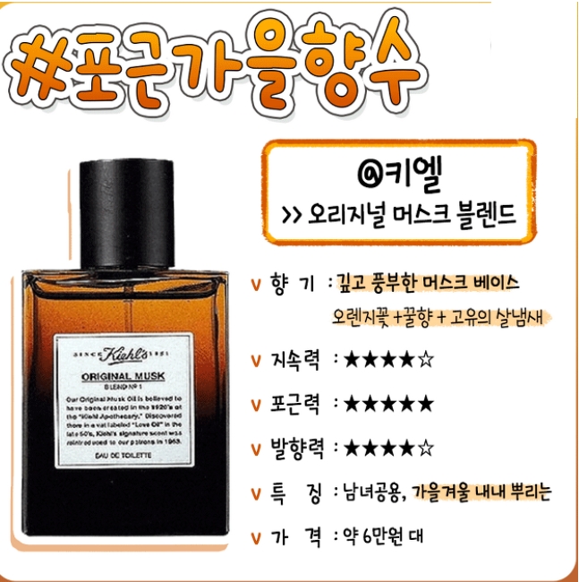오늘은 요즘 같은 날씨가 포근하면서 향긋한 가을향수를 추천해드리려고해요.