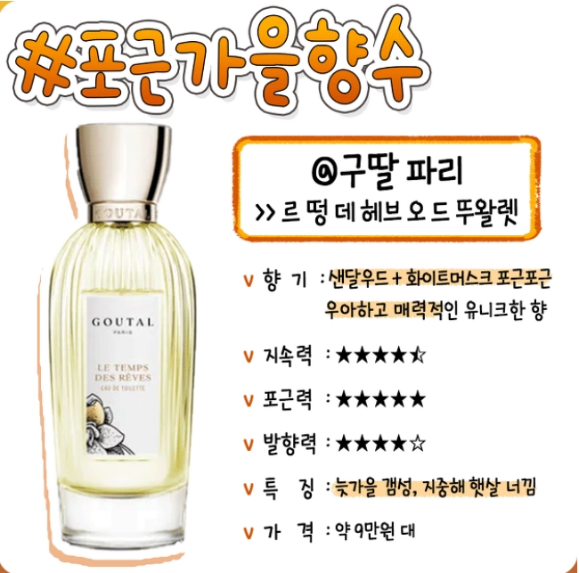 왜 지나가다보면 좋은향이 날때 저향 멀까? 무슨향이지 궁금할때가 잇잔아요.. 아무래도 매번 생각없이 뿌리고 지나갈때가 많은대 그래도 좋은향을 뿌리면 그날하루도 기분좋아지고 마무리할대 뿌려도 기분좋아지는 나만의향을 이가을에 찾아보는것도 어떨까여?